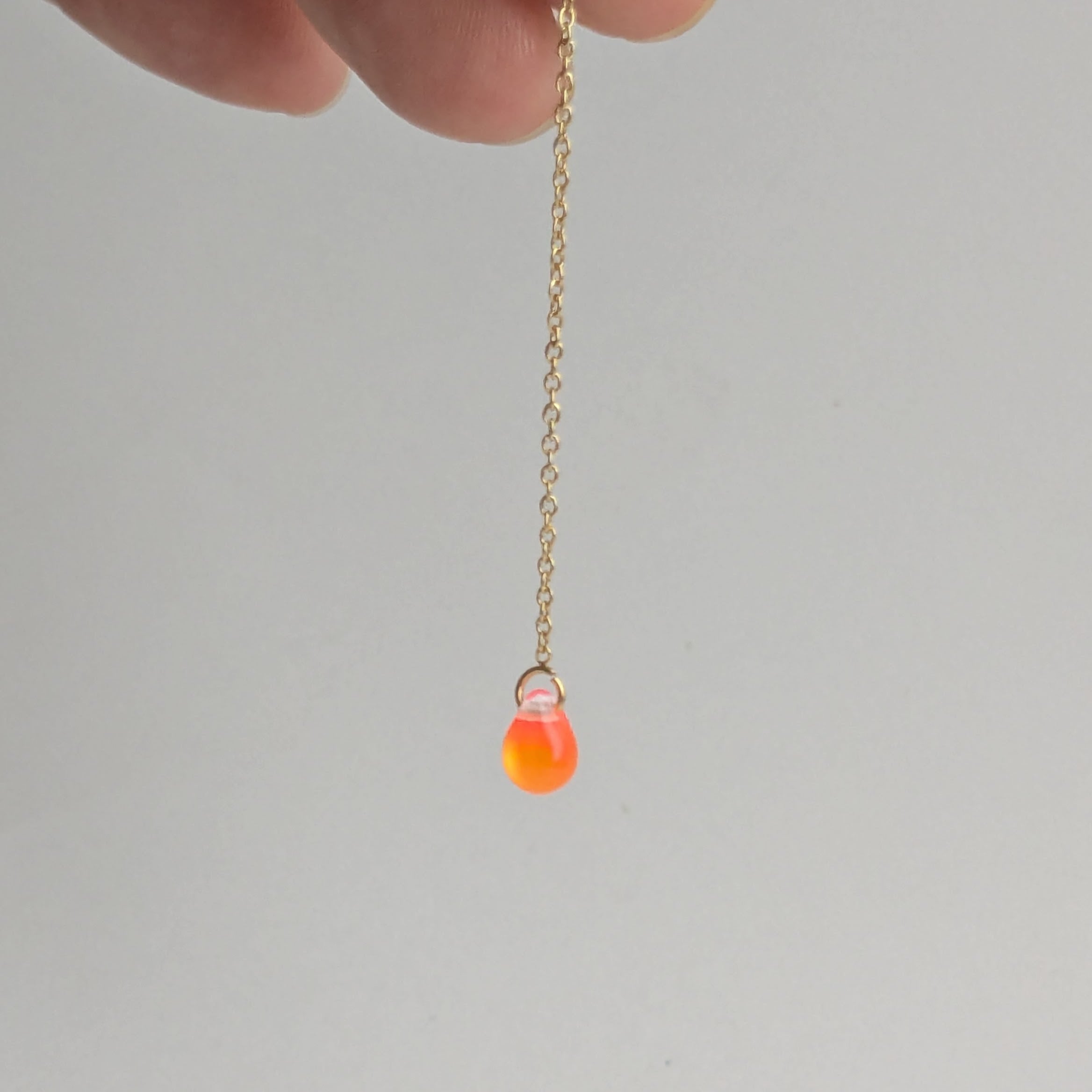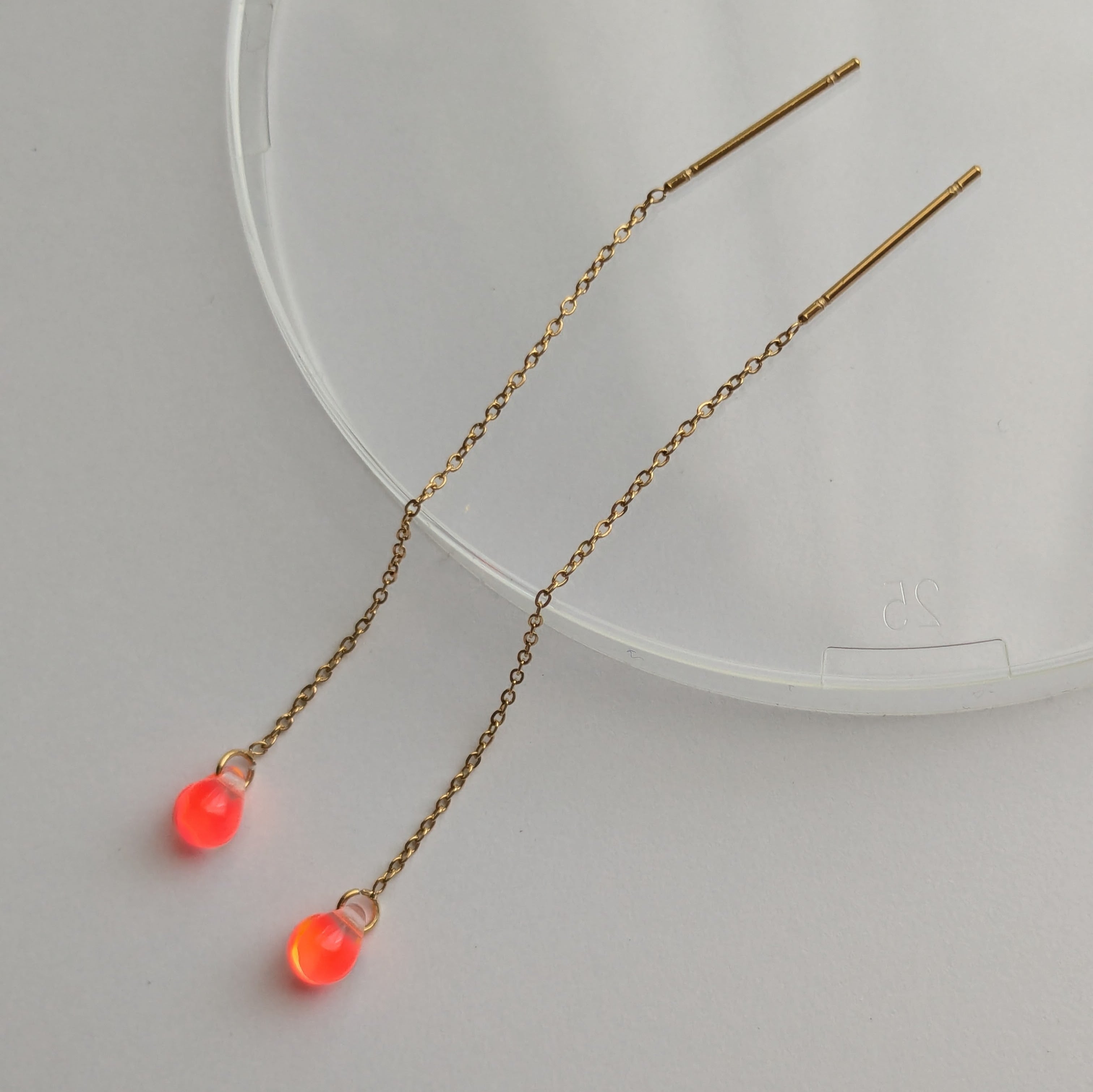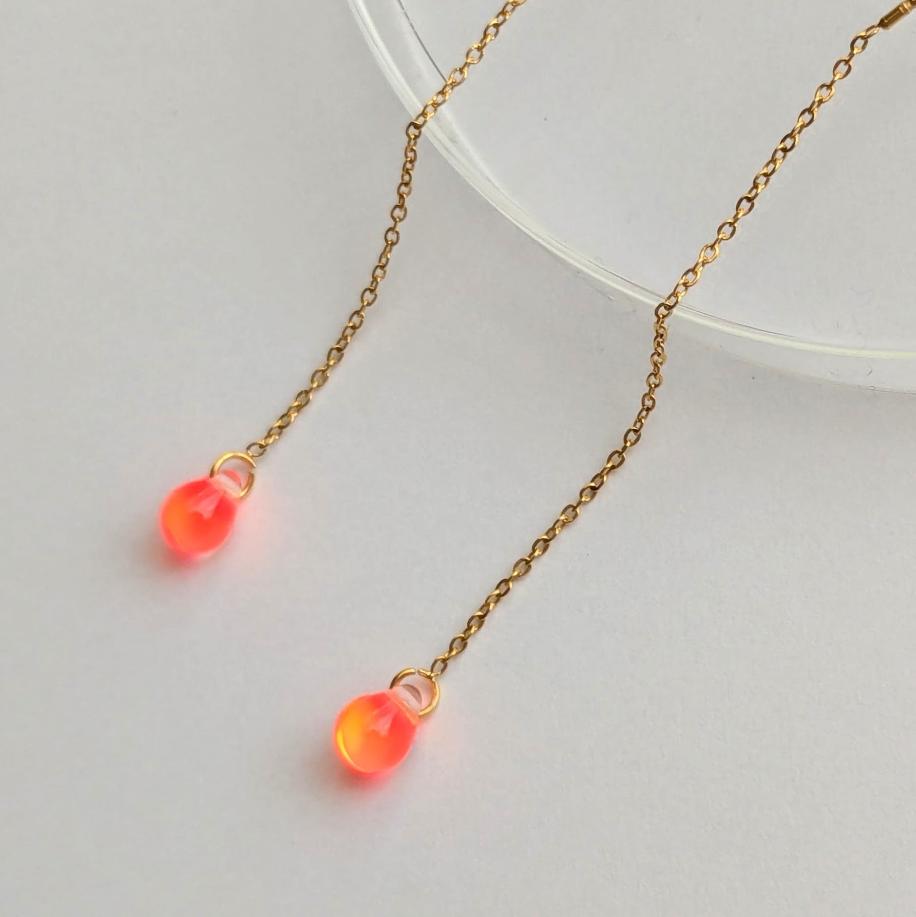 さらにこのピアスには秘密があって、太陽の光にかざしてから暗いところに行くと本物の線香花火の火花のように灯ります。