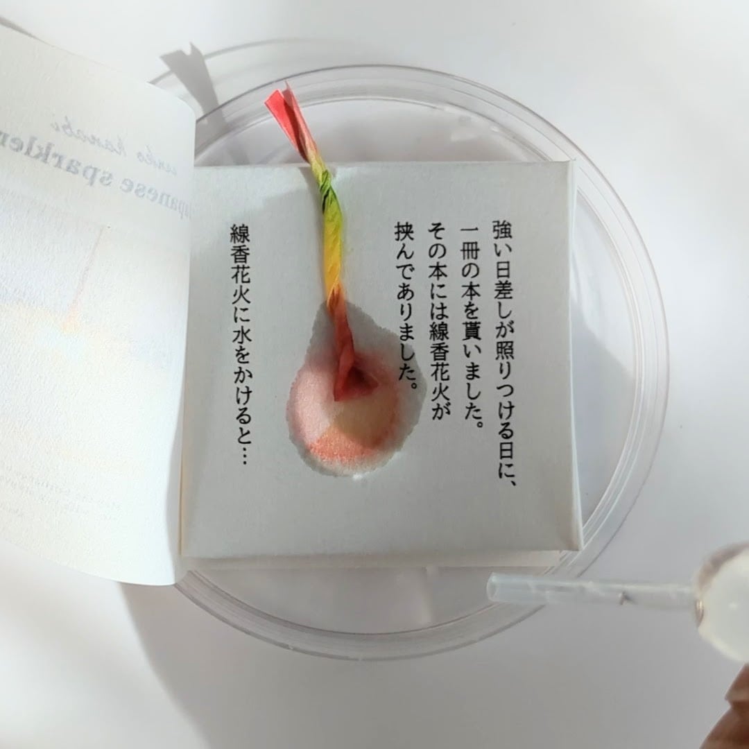 「溶ける本のギフト」は、特別な日にぴったりの贈り物です。本のお話の通りに、線香花火に水をかけると・・・?!